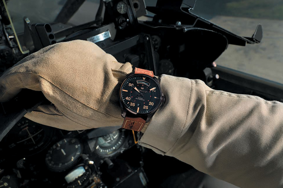 해밀턴의 시계는 다르다. 대담하고 자유로운 미국적 감성과 기술력, 정확성을 내세우는 스위스의 철학을 바탕으로 해, 두 문화의 DNA가 완벽하게 융화된 시계를 내놓는다. 1892년 미국 펜실베이니아주 랭커스터에서 문을 연 해밀턴은 미군에 엄청난 양의 시계를 공급했다. 수많은 할리우드 영화를 위한 특별한 시계도 제작해왔다. 1977년 스위스 회사에 인수되어 현재 스와치 그룹에 소속되었지만, 자신의 뿌리인 미국적 감성과 가치를 시계에 그대로 반영하고 있다. 해밀턴은 브랜드 초창기부터 항공 분야와 긴밀한 관계를 이어왔다. 1918년 워싱턴과 뉴욕을 오가는 항공우편 서비스의 미국 최초 공식 타임키퍼였으며, 1926년 북극 상공을 지나는 역사적인 비행의 시간을 측정한 브랜드였다. 이후 현재까지 전 세계 공군 비행 중대, 레드 불 에어쇼 팀의 파일럿 시계로 자리 잡으며 브랜드의 명성을 이어왔다. 대한민국 공군도 해밀턴의 시계를 차고 하늘을 가른다. 2018년은 해밀턴의 첫 파일럿 워치 출시 1백 주년을 맞은 해인 만큼 1천9백18개 한정판 ‘카키 X-윈드 오토 크로노’로 이를 자축했다. 측풍 계산기를 장착했다는 점이 눈에 띄는 특징이다. 측풍이란 운항 중인 비행기와 직각을 이루는 바람으로, 일정 각도 이상의 측풍은 비행기 이착륙에 치명적인 영향을 주는 만큼 측풍 측정 여부는 파일럿의 안전한 운행과 이착륙을 돕는 중요한 요소다. 무브먼트 역시 달라졌다. 실리시움 헤어스프링을 적용했는데, 실리시움은 실리콘을 가공한 신소재로, 기계식 시계의 부품으로 사용한다. 변형이 심하지 않고 훼손이 덜 되는 장점이 있어 헤어스프링의 소재로 제격이다. 하이엔드 워치 브랜드에서 주로 사용하는 소재인데, 최근 점차 확대되고 있다. 그 덕에 파일럿 워치를 괴롭히는 요인인 자기류의 영향을 완화하는 내자성이 향상되었고, 무브먼트 내구성이 높아져 외부 충격과 오염에서도 자유로워졌다. 같은 스와치 그룹에 속한 ETA사의 자동 크로노그래프 칼리버 7750을 베이스로 만든 무브먼트 H-21-Si를 장착했는데, 해밀턴에서는 드물게 COSC 인증을 받아 정확성에서도 전혀 부족함이 없음을 뽐냈다.