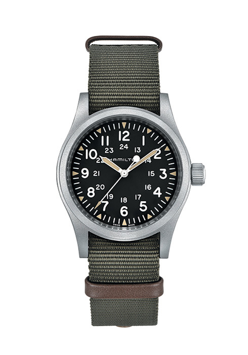 다음으로 눈여겨봐야 할 카키 컬렉션은 ‘카키 파일럿 오토 데이 데이트’의 뉴 모델이다. 기존보다 한층 길어진 80시간의 파워 리저브 기능을 갖춘 H-40 오토매틱 무브먼트를 탑재해 시계가 멈추는 것에 신경 쓰지 않고 주말 여행이나 출장을 떠날 수 있다. 전체적으로 아날로그 무드로 무장했지만, 소재나 마감은 현대적이다. 클래식한 항공기의 조정석 계기판을 연상시키는 12시 방향의 요일 디스플레이, 미 공군 파일럿들이 입던 가죽 항공 재킷에서 영감을 얻어 디자인한 묵직한 가죽 스트랩, 다크 브라운 컬러로 PVD 코팅한 스테인리스 스틸 케이스 등이 그것이다. 해밀턴은 파일럿 워치와 함께 밀리터리 시계 제작에도 유구한 역사를 보유하고 있다. 카키 컬렉션에서 마지막으로 소개할 ‘카키 필드 메커니컬 38mm’는1940년대 군용 시계로 제작한 ‘카키 필드’의 오리지널 모델의 복각 워치라는 점에서 워치 마니아들을 자극한다. 필드 워치는 본래 발로 뛰어다녀야 하는 보병을 위한 시계를 뜻한다. 해밀턴 군용 시계의 기본이 되는 카키 컬렉션은 본래 육군 병사에게 지급할 목적으로 대량생산되었다. 지상의 격렬한 전투에 견디기 위해 내구성이 중시되었고, 단순하고 투박한 구조가 특징이었다. 그 특유의 멋이 드러나는 밀리터리 콘셉트의 시계가 바로 카키 필드 라인이다. 해밀턴에서는 그동안 다양한 라인업을 선보였지만, 근래에는 오리지널에 근접한 모델은 출시하지 않았다. 이번 카키 필드 메커니컬은 매일 감아서 사용하는 재미를 느낄 수 있는 수동 무브먼트에 오리지널 디테일을 따랐다. 여기에 나토 스트랩을 기본으로 매치했다. 케이스 지름이 38mm로, 투박하게 느껴지는 케이스 가공 또한 오리지널을 향한 의지다. 이번에 브라운 다이얼을 추가했고, 오리지널 모델과 동일하게 50m 방수가 가능하며 크라운을 당기면 스톱 세컨즈 기능을 작동할 수 있다. 바젤월드를 통해 공개된 2018 카키 컬렉션은 기계식 시계 입문자는 물론 마니아에게도 부족함이 없는 듯하다.