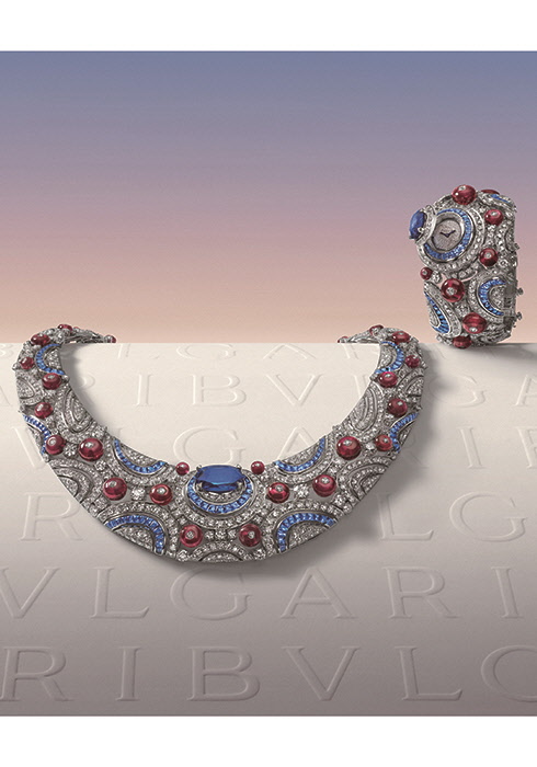 다이아몬드 초커와 체인 등 탈착 가능한 피스로 이루어져, 최소 아홉 가지의 다양한 방식으로 착용할 수 있는 다재다능한 하이 주얼리 피스는 불가리의 무한한 상상력을 대변한다. 네크리스 하나를 완성하는 데 무려 2천5백 시간이 소요된다. 10.02캐럿 앤티크 쿠션 컷 모잠비크 루비를 중심으로 바게트 컷 다이아몬드와 카보숑 컷 루비를 세팅하고 실크같이 관능적인 태슬 스타일로 제작해 고혹적인 아름다움을 부각했다. 유기적으로 연결된 태슬과 펜던트, 네크리스는 마디마다 나누어진 섬세한 구조를 갖춘 덕에 쉽게 변형해 착용할 수 있다.