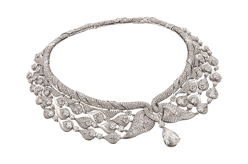 1930년대 유럽을 풍미했던 아르 데코 사조의 대표적인 예술가 타마라 드 렘피카(Tamara de Lempicka)의 작품에서 영감을 얻은 이 네크리스는 우아하고 부드러운 여성미를 상징하며 아르데코 예술에서 자주 등장하는 요소인 백조를 오마주한다. 이 네크리스는 백조가 지닌 도도함과 겸손함이라는 상반된 특성을 담아 여성스러운 분위기를 극대화한다. 눈에 핑크 다이아몬드를 세팅한 두 마리 백조가 서로의 날개 밑에 머리를 숨기고 있는 모습을 형상화했으며, 다이아몬드를 풀 세팅한 새의 날개 모티브에는 머더오브펄을 더해 깃털의 고급스러운 움직임과 가벼운 느낌을 표현했다.
