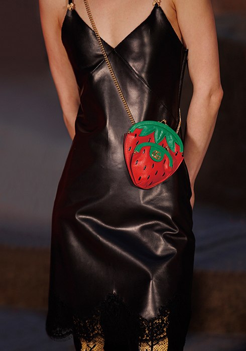 10~12 오버사이즈 선글라스, 딸기 모양의 가방, 니하이 레이스업 부츠 등 일상과 어울리지 않는 소품들이 색다른 분위기를 연출한다.
