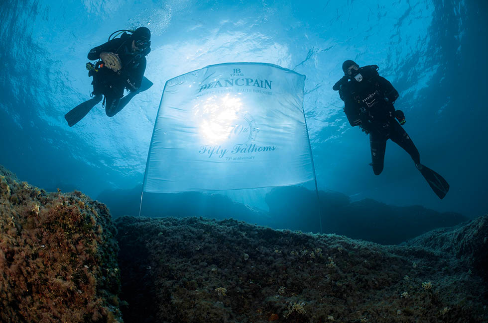 새로운 발견의 결실인 피프티 패덤즈는 전혀 다른 결과를 초래할 수 있었던 다이빙 경험에서 탄생했다. 블랑팡의 공동 CEO이자 열정적인 다이버였던 장-자크 피슈테르(Jean-Jacques Fiechter)는 그가 가장 좋아하는 프랑스 남부 도시 칸에서 다이빙을 즐기다가 갑자기 산소 부족 현상을 겪었다. 그는 이를 계기로 스쿠버다이빙에 알맞은 시간 측정 도구의 필요성을 깨닫고 세계 최초의 진정한 다이빙 워치인 피프티 패덤즈를 구상했다. 수동 와인딩 방식에 비해 크라운에 배치된 실의 마모가 적은 셀프 와인딩 무브먼트, 다이빙 환경에 존재하는 자성으로부터 워치를 보호하는 항자성, 10bar의 방수 기능, 어두운 색상의 다이얼과 대비를 이루며 우수한 가독성을 제공하는 XXL 야광 마커에 이르기까지, 1953년에 탄생한 피프티 패덤즈는 이 모든 요소를 갖추고 있었다. 특히 이중으로 밀폐 처리한 더블 실 크라운 시스템, 케이스 고정 시 오링(o-ring) 시스템의 변형을 막아주는 케이스 백의 스크루, 단방향 회전 베젤은 특허를 획득했다. 당시 프랑스, 독일, 미국, 노르웨이를 포함한 주요 군대에서는 전투 잠수 부대원을 위해 이러한 기능과 성능을 지닌 피프티 패덤즈를 자연스럽게 채택했다. 장-자크 피슈테르의 아이디어는 워치메이킹 분야 전반에 걸쳐 다이빙 워치의 전형으로 자리 잡았으며, 그 명성은 오늘날까지 이어져오고 있다.