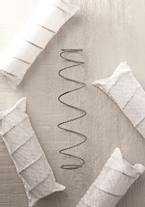 매트리스에서 가장 중요한 요소이기도 한, 시몬스만의 독보적인 매트리스 설계 시스템 역시 빼놓을 수 없다. 오직 이 컬렉션만을 위해 고안한, 삼중 나선 구조의 케이블 코일로 이루어진 ‘어드밴스드-포켓스프링’ 기술력이 그것. 이는 스프링 하나하나를 이탈리아산 특수 커버 안에 넣어 독립된 지지력으로 미세한 움직임에도 반응하도록 설계한 기술력이다. 또 실크와 캐시미어, 리넨 등 약 50종의 엄선된 프리미엄 소재를 결합한 레이어링 구조, 사람마다 각기 다른 체형과 무게중심을 고려해 포켓스프링을 조합하고 배열하는 조닝 시스템을 통해 완벽에 가까운 매트리스를 구현해냈다. 그뿐 아니라 국내 자체 생산하는 시몬스의 모든 매트리스는 국가 공인 친환경 인증을 받았다. 사실 시몬스만의 1천9백36가지 품질 관리 항목은 국가 공인 기준보다 까다롭다고 정평이 나 있기에 그리 놀랄 만한 일은 아니다. 1870년부터 무려 한 세기 반 동안 작은 것 하나에도 기본을 지키는 고집과 시몬스의 장인 정신으로 완성한 뷰티레스트 블랙 컬렉션을 통해 당신의 일상에서 놀라운 변화를 직접 경험해보길.