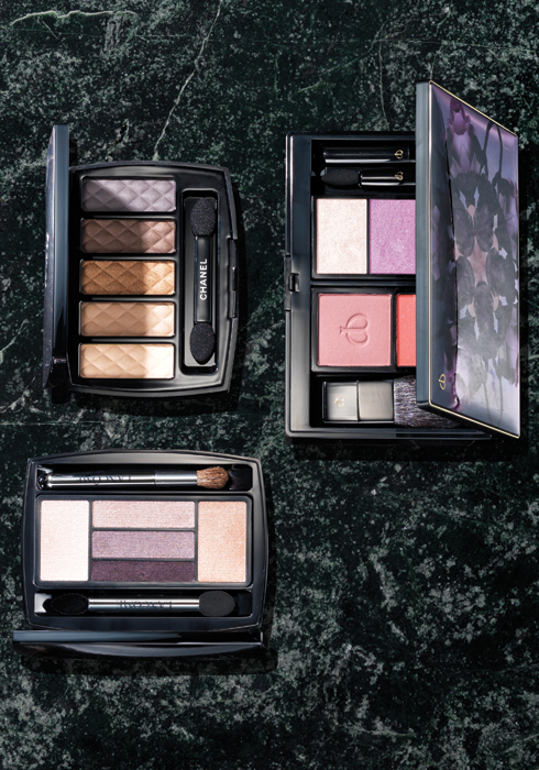 (왼쪽 위부터 시계 방향으로) 샤넬 옹브르 마틀라쎄 드 샤넬 차밍 8만9천원. 끌레드뽀 보떼 인챈트 윈터 가든 콜렉션 쥬 플로럴 22만원. 랑콤 이프노즈 팔레트 2.7g 7만5천원대. |