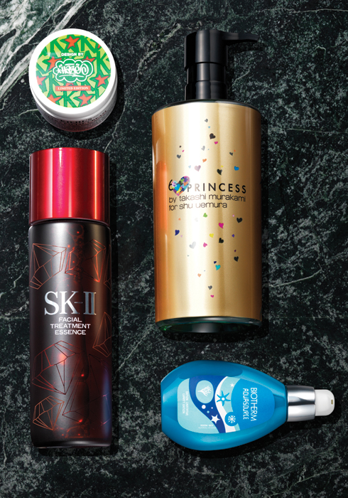 (왼쪽 위부터 시계 방향으로) 키엘 에릭 헤이즈 홀리데이 컬렉션 울트라 훼이셜 크림 50ml 3만9천원. 비오템 워터 러버스 아쿠아수르스 매직 젤 오일 125ml 6만8천원대. SK-Ⅱ 페이셜 트리트먼트 에센스 리미티드 에디션 215ml 19만원대. |