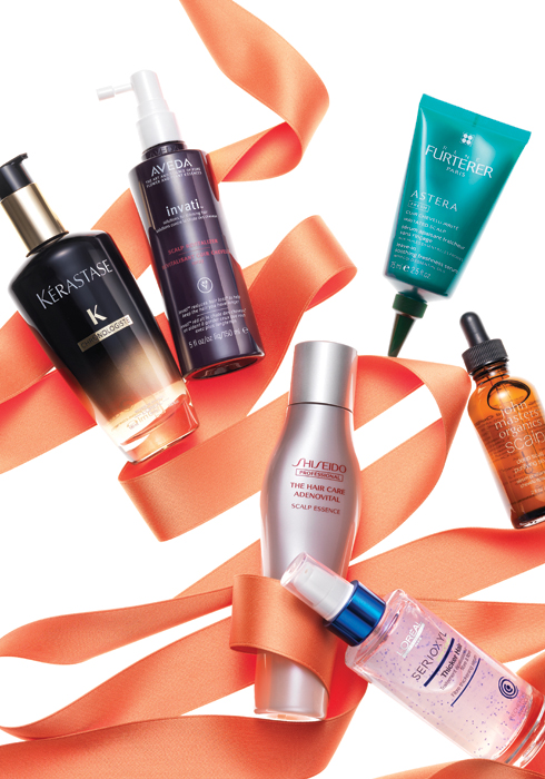 두피와 모발 고민을 한 번에 해결하고 싶다면 ‘케라스타즈 크로놀로지스트 퍼퓸 오일’을 바를 것. 바다 에너지의 상징이라 불리는 애비신 성분이 손상된 두피를 진정시킨다. 부드러운 오일 텍스처로 모발에 보습막을 형성하고 향기로운 장미 향이 후각을 자극한다(120ml 7만2천원대). 강황과 인삼 같은 식물 활성화 성분이 두피를 건강하게 개선시키는 ‘아베다 인바티 스칼프 리바이탈라이저’는 아베다의 베스트셀러 라인인 인바티의 세 번째 단계로, 샴푸와 컨디셔너 사용 후 두피에 충분히 뿌리면 된다. 비타민 E 성분이 두피의 혈액순환을 촉진하며 스프레이 타입이라 간편하다(150ml 7만9천원). 민감성 두피라면 ‘르네휘테르 아스테라 프레시 수딩 세럼’으로 두피를 진정시키자. 아스테라 성분과 쿨링 에센셜 오일이 두피 온도를 낮춰주는 제품으로, 샴푸를 한 뒤에도 가려웠던 두피를 잠재워준다(75ml 2만9천원). 나이가 들면 두피도 피부와 마찬가지로 노화되며 기능이 약해진다. 두피를 깨끗이 세정하고 영양을 공급해주는 ‘존마스터스오가닉 딥 스칼프 퓨리파잉 세럼’은 탈모를 예방해주는 메도 스윗 성분과 피지 조절에 효과적인 비타민 B 성분이 두피와 모발에 활기를 부여한다(59ml 4만7천원). 두피가 건강하지 않으면 머리숱이 적어지고 모발이 힘없이 가라앉는다. ‘로레알 프로페셔널 파리 세리옥실 띠커 화이트 세럼’은 젤 타입 텍스처에 담긴 항산화 성분 캡슐 알갱이가 바르는 즉시 터지면서 모발을 두껍고 튼튼하게 만들어준다(90ml 6만원대). 영양분이 많은 대지에서 건강한 식물이 자라듯 모발도 환경이 중요하다. 모발이 자라나는 환경을 최적화해주는 ‘시세이도 프로페셔널 아데노바이탈 스캘프 에센스’는 모발 성장을 촉진하는 아데노신 성분을 담았다. 두피를 가볍게 마사지하면 제품 흡수에 효과적이다(180ml 8만8천원).