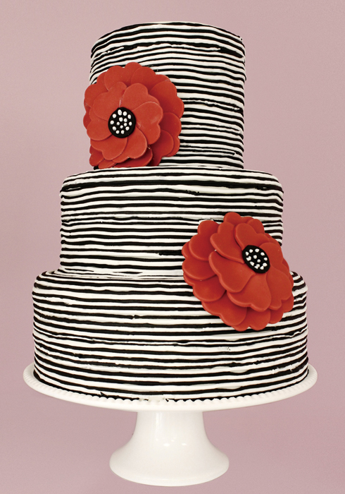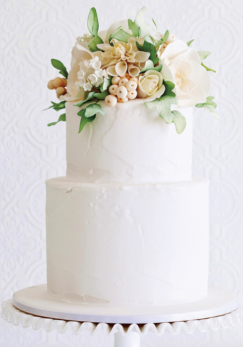 클래식한 스타일을 현대적으로 재해석한 케이크. 화이트 우유 크림을 기본으로 꽃 모티브로 장식했다. ericaobrien.com