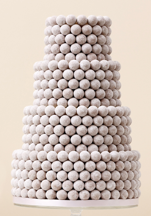프랄린(태운 아몬드에 캐러멜 모양의 사탕을 섞은 것)을 이용한 케이크. 프랑스 케이크 크로캉부슈(croquembouche)에서 영감을 받았다. peggyporschen.com
