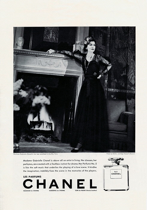 8 가브리엘 샤넬의 모습을 담은 1921년 N°5 광고 이미지.