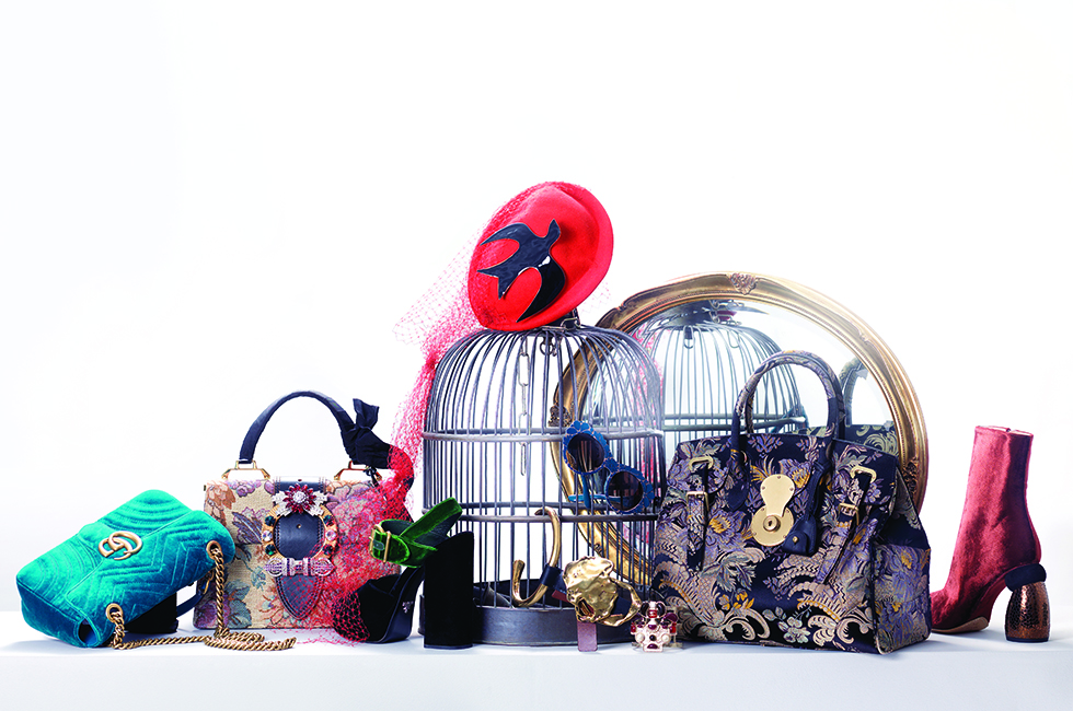 벨벳과 자카드 등 독특한 소재, 빈티지한 컬러와 장식이 옛 왕실에서 볼법한 호화로운 분위기를 연출한다.