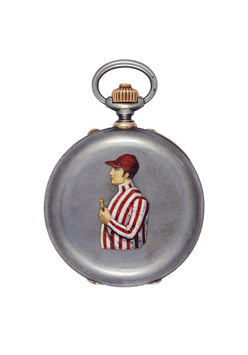5, 6 기수의 모습을 전면에 새긴 투톤 실버 & 레드 골드 스플릿-세컨즈 크로노그래프 포켓 워치(1889년).