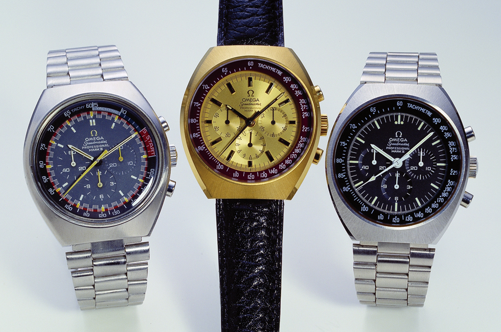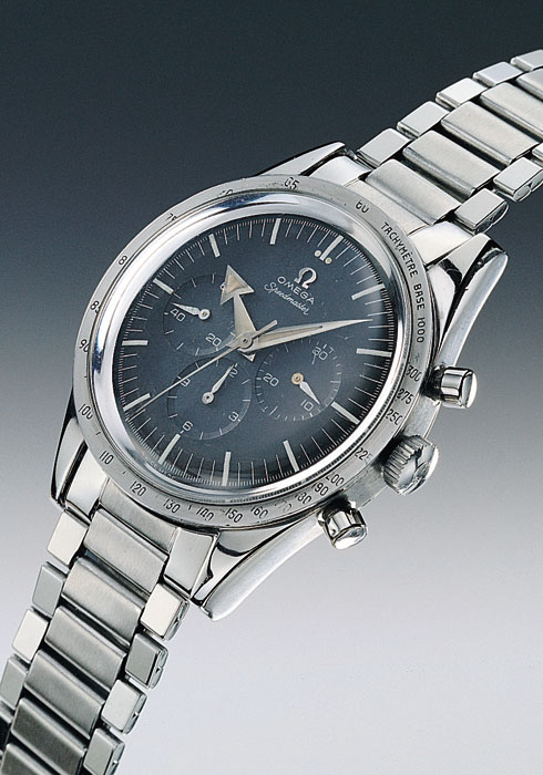 오메가의 스피드마스터는 시계 역사상 가장 유명한 크로노그래프 워치다. 그렇다면 크로노그래프(chronograph)란 무엇인가? 일반적으로 짧은 시간을 정밀하게 측정해 기록하는 기구를 의미하는데, 맥박을 재거나 운동경기의 랩타임 등을 측정하는 기기가 바로 크로노그래프다. 연구실이나 의료 분야, 기계공학 분야에서 사용하는 이 크로노그래프 기능을 시계에 담은 것이 바로 크로노그래프 워치인 것. 다이얼에 시간과 분을 표시하는 바늘 이외에 마치 계기판처럼 시간과 분, 초를 따로 측정하는 3개의 동심원이 담겨 있는 시계가 바로 크로노그래프 기능을 갖춘 시계다. 시계 옆의 누름 장치를 이용해 기록을 측정할 수 있고 스톱워치 기능이나 속도, 거리를 측정하는 기능도 있다. 이 때문에 크로노그래프 워치는 레이싱, 올림픽과 같이 기록을 측정해야 하는 스포츠 선수나 비행을 위해 정확한 시간 계측이 필요한 파일럿들이 주로 사용하는 시계로 자리매김했다. 오메가의 스피드마스터 역시 1917년 영국의 비행 대대에 공급한 이래로, 제2차 세계대전 중에도 영국 왕립 공군과 육군 부대를 비롯, 여러 국가의 군용 시계를 공급해왔다. 오메가는 1957년 작전 수행을 위한 정밀하고 정확한 시계를 개발해 ‘스피드마스터(Speedmaster)’라는 이름을 붙였다. 이후 오메가 스피드마스터는 여기에 새로운 스토리를 더하게 되는데, 우주인들이 사용하는 ‘문워치(Moonwatch)’의 탄생이 바로 그것이다.