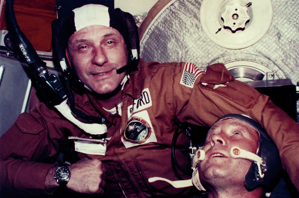 어느 날 갑자기 한 시계 브랜드가 우주 비행을 위한 시계로 선정되었다는 통보를 받는다면, 이는 마케팅적으로 활용할 가치가 매우 큰 이슈일 것이다. 운이 좋다고 말하는 사람도 있겠지만 우리는 알고 있다. 준비되지 않은 자에게 기회는 오지 않는다는 것을. 오메가가 꾸준히, 그리고 지치지 않고 기술 개발에 매진한 것에 대한 보상은 이렇게 찾아왔다. 1965년 나사가 우주 비행을 위한 유일한 시계로 오메가의 스피드마스터를 선정한 것이다. 혹자는 고도의 마케팅 전략이라 의심하겠지만, 오메가는 나사가 유인 우주 미션에 오메가 시계를 선택했다는 사실이 확정되고 나서야 이를 알게 되었다. 결론부터 이야기하자면 수많은 크로노그래프 시계 중 달에 착륙해 정상적으로 작동할 것이라 여겨지는, 극한의 테스트를 통과한 워치가 오직 오메가의 스피드마스터뿐이었다. 나사의 우주인들이 달에 간다는 것은 <스타워즈>와 같은 영화 속 이야기와는 다르다. 그들에겐 목숨을 건 현실이다. 단순히 광고 효과를 위해 시계 브랜드를 선정한다는 것은 불가능한 이야기인 것이다.