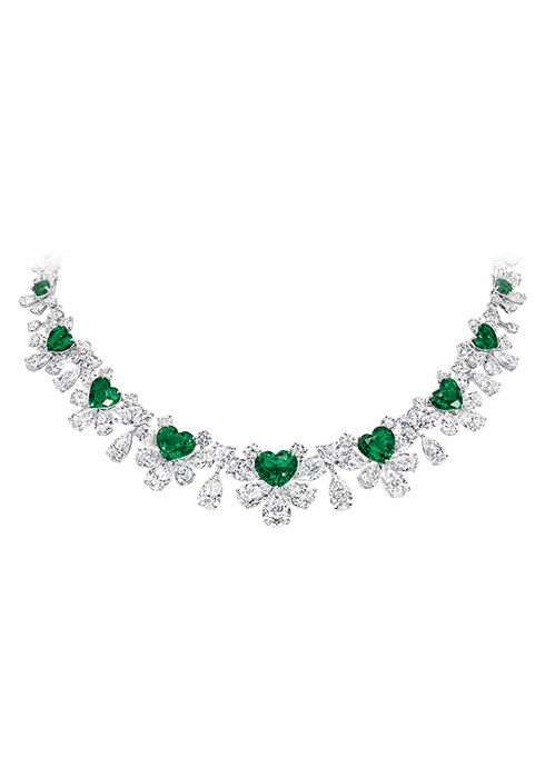 하트 셰이프의 총 26.45캐럿 에메랄드와 총 77.19캐럿 멀티 셰이프 다이아몬드로 화려하게 장식한 네크리스 가격 미정 그라프 02-6905-3330 |