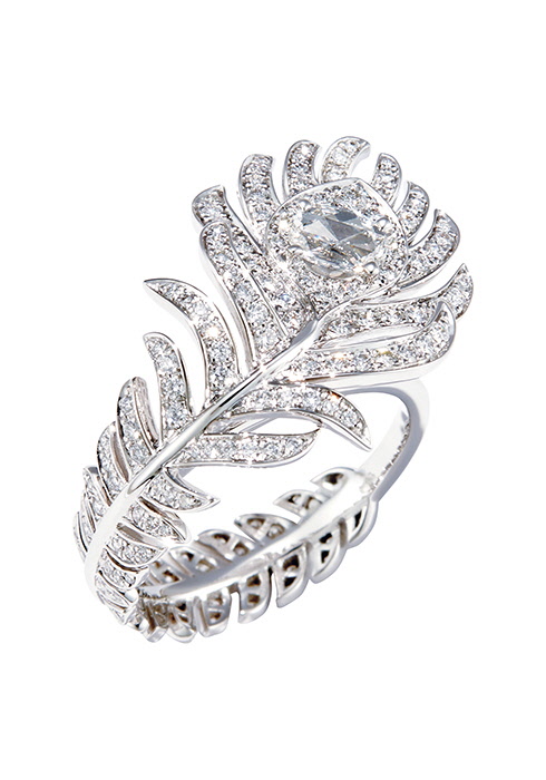 0.51캐럿 로즈 컷 다이아몬드를 중심으로 3백14개의 라운드 다이아몬드로 장식한 깃털 디자인의 화이트 플륌 드 펑 라지 링 5천만원대 부쉐론 031-5170-1177 |