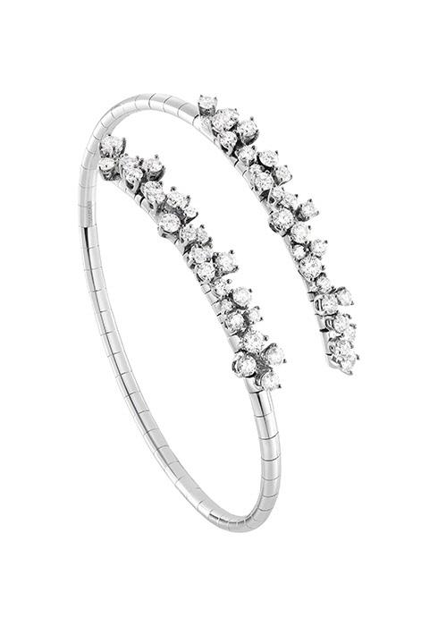 화이트 골드 오픈 밴드에 1천2백22개의 브릴리언트 컷 다이아몬드를 세팅한 오픈 뱅글 브레이슬릿 1억1천65만원 피아제 02-3479-1802.