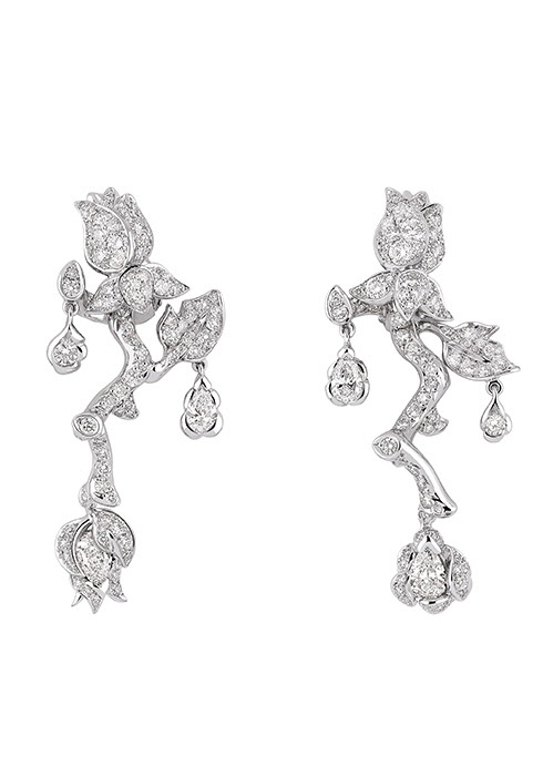 정교한 장미 모양의 화이트 골드에 총 3.48캐럿 다이아몬드를 세팅한 로즈 디올 바가텔 라지 이어링 가격 미정 디올 파인주얼리 02-3480-0104 |