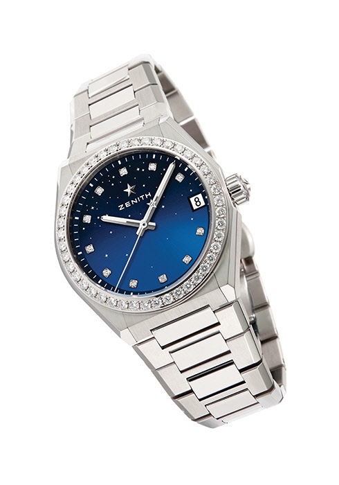 밤하늘을 연상시키는 블루 다이얼에 베젤 다이아몬드 세팅을 더한 데피 미드나잇 1천5백11만원 제니스 02-3277-0185 |