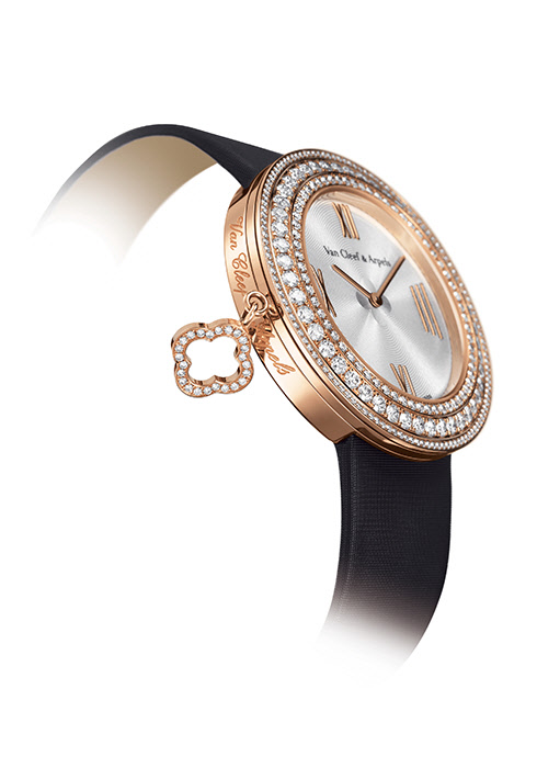 베젤에 다이아몬드 3줄을 더한 25X25mm 핑크 골드 케이스에 알함브라 참으로 장식한 참 워치 2천5백만원대 반클리프 아펠 1668-1906 |