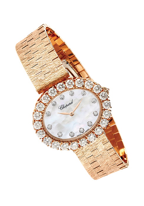자개 다이얼에 다이아몬드 베젤과 아워 마커를 갖춘 디아망트 로즈 골드 브레이슬릿 9천9백23만원 쇼파드 02-6905-3390 |