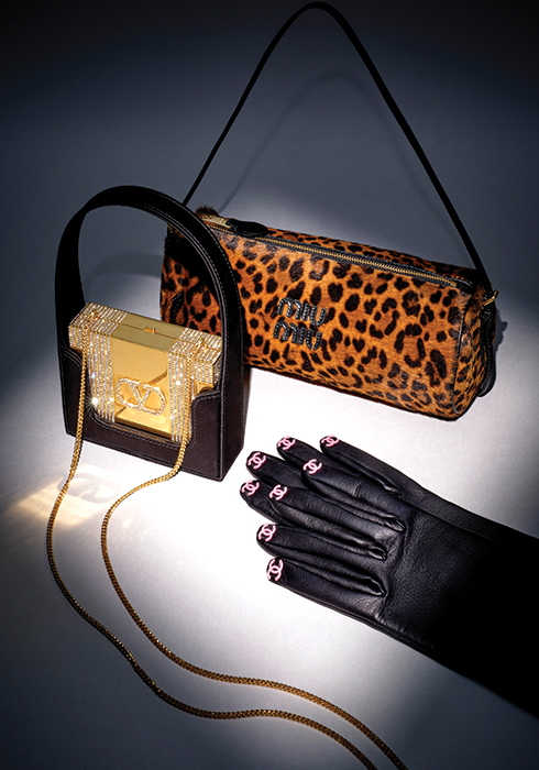 관능적인 레오퍼드 프린트 파우치 백 가격 미정 미우미우 02-541-7443. 블랙 톱 핸들을 분리하면 클러치 또는 숄더백으로 활용 가능한 미노모르프 미니 백 6백30만원 발렌티노 가라바니 02-2015-4655. 손끝에 더블 C 로고를 섬세하게 담은 램 스킨 소재 글러브 가격 미정 샤넬 080-805-9628. |