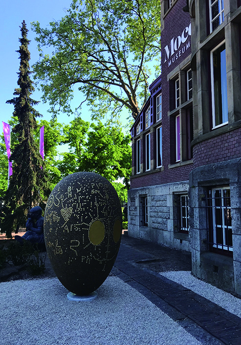 디자인에 관심이 있는 이들 사이에서는 흔히 마르셀 반더르스라고 하면 그의 분신처럼 여겨지는 가구 브랜드 ‘모오이(Moooi)’를 떠올리게 마련이다. 그가 2001년 공동 창립자이자 아트 디렉터로 설립한 브랜드 모오이는 네덜란드어로 ‘아름답다(mooi)’란 뜻을 지닌 단어에 ‘o’를 하나 더했다(보다 특별한 아름다움을 강조하기 위해서란다). 그렇지만 그는 자신의 이름을 내세운 스튜디오를 따로 두고 건축, 아트 등 다양한 영역에 걸쳐 프로젝트를 진행한다. 모오이의 본사는 브레다(Breda)에, 마르셀 반더르스 스튜디오는 암스테르담에 있다. 도심에서 비켜난 요르단 지구 쪽에 위치한 그의 스튜디오는 암스테르담의 명물인 종탑이 잘 보이는 건물에 자리 잡고 있었다. 트레이드마크로 여겨질 정도로 즐겨 착용하는 알록달록한 ‘레인보 목걸이(Rainbow Necklace)’에 흰 셔츠, 카고 바지 차림으로 나타난 마르셀 반더르스. 아무래도 자신의 홈그라운드에서 만난 덕분인지 훨씬 더 여유 있어 보였다. 암스테르담은 마르셀 반더르스의 고향은 아니지만 자신감 넘치고 유머 있는 이 전천후 크리에이터를 매우 자랑스러워하는 듯했다. 2014년에는 이 도시의 뮤지엄 지구에 있는 암스테르담 시립미술관(Stedelijk Museum)에서 그의 25년간의 작품 활동을 아우르는 회고전 <Pinned Up>을 열기도 했고, 또 다른 미술관인 모코 뮤지엄(Moco Museum)에서는 그의 작품을 영구 설치 작품으로 전시해놓기도 했다. ‘Portrait’라는 작품명의 커다란 달걀 모양 설치 작품인데, 필자가 마침 모코 뮤지엄에 들렀을 때 직접 볼 수 있었다. 모코 뮤지엄에 갔었다고 하자 마르셀은 “그게 설치된 지 2주 정도밖에 되지 않았는데, 운이 좋다”면서 웃었다. 그가 ‘암스테르담에 선사하는 선물’이라고 표현한 이 작품을 자세히 들여다보면 연갈색의 타원형 설치물 표면에 구리 소재의 핀들이 박혀 있다. 모코 뮤지엄을 찾는 사람들이 핀을 사서 ‘달걀’ 위에 하나둘 꽂다 보면 세상에 하나밖에 없는 예술 작품이 될 수 있다는 데 착안한 ‘DIY형 조각’이다. “2주 전만 해도 민숭민숭한 달걀이었는데, 의외로 반응이 좋아 벌써 개성 있는 작품이 됐네요.” 금빛 핀이 꽂혀 있는 그의 작품을 찍은 사진을 보여주자 그는 신이 난 듯 “부디 이 달걀이 도시 가득 번지는 날이 빨리 오기를 기대한다”고 장난기 섞인 말투로 ‘바람’을 얘기했다. 사실 마르셀 반더르스의 ‘달걀’들은 이미 일본에도 있다. 일본의 저명한 건축가 반 시게루(Shigeru Ban)가 설계한 오이타의 한 미술관에 문화적 연대와 교류를 상징하는 달걀 모양의 대형 설치 작품을 선보인 적이 있다. 작품명은 ‘The Eurasian Garden’(2014).