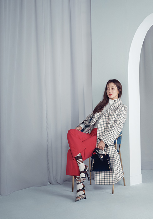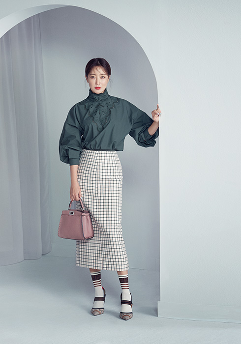 펜디 2018 프리폴(pre-fall) 컬렉션을 패턴과 컬러, 실루엣과 스타일, 청순함과 우아함이라는 매력적인 애티튜드로 풀어낸 김희선의 트윈 룩.