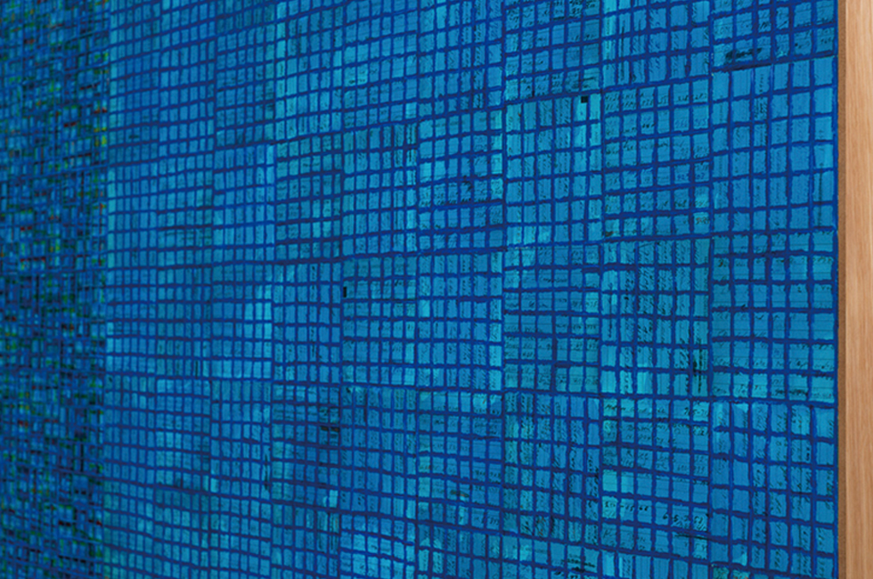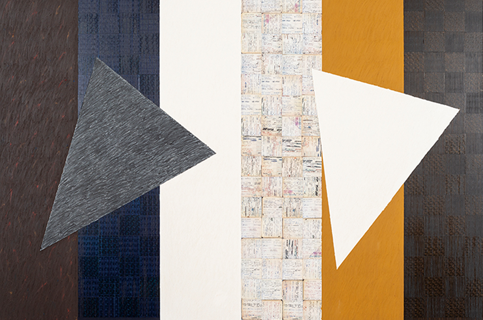 멀리 미국 시카고에서 찾아온 작가 맥아서 비니언(McArthur Binion)은 1970년대 뉴욕의 블랙 아방가르드 흐름을 함께하며 꾸준히 활동했지만 60대 중반에 들어서야 주목받기 시작한, 하지만 현재는 세계 유수 미술관에서 작품을 소장하고 있는 추상화 거장이다. 언뜻 모노크롬 추상화 같은 작업도 있지만 가까이에서 들여다보면 그의 작업 세계는 또 하나의 소우주를 품고 있다. 캔버스 위에 자신의 출생증명서, 전화번호부, 악보 같은 사적 문서의 사진을 놓고는 그 위에 오일 스틱으로 힘을 주어 그리드(격자) 패턴을 반복적으로 중첩해 그려내는 방식으로 ‘그리드 추상화’라고도 불린다. 그래서 그는 뒤늦게 조명받은 ‘블랙 미니멀리스트’로 꼽히기도 한다. 하지만 작가는 자신의 그리드는 미니멀리즘을 수용하고자 한 기제가 아니라고 한다. 그저 반복적인 우리 삶의 형태로 치환될 수 있는 격자 뒤로 자신의 개인사를 담아낸 정체성의 회화라는 것이다. 재즈, 문학 같은 예술적 영감의 재료들을 키워낸 그의 인생 역정을 보면 알 수 있듯이 말이다.