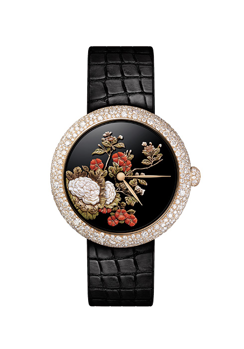 지난해에는 최초로 인하우스 무브먼트를 개발하며 고급 시계 브랜드로서 높은 완성도를 보여주었는데, 점핑 아워(jumping hour)와 레트로그레이드 미닛(retrograde minute) 기능을 적용한 ‘칼리버 1(CALIBRE 1)’이 바로 그 주인공이다. 샤넬 최초로 오직 남성이 착용할 수 있는 워치인 ‘무슈 드 샤넬(Monsieur de CHANEL)’을 선보인 것도 기억할 만한 기록이다. 올해는 그랑 푀 에나멜 기법을 차용한 신제품 ‘무슈 플래티넘 블랙’을 1백 개 한정으로 새롭게 선보였다. 인하우스 무브먼트만큼이나 많은 노력이 담겨 있는 것이 바로 ‘마드모아젤 프리베(Mademoiselle Prive)’ 컬렉션이다. 금사 자수 장식와 자개 마케트리 등 장인의 숨결을 더한 컬렉션을 기본으로 불가능한 예술적 기법을 다이얼에 고스란히 담아냈다. 뛰어난 에나멜러와 조판사, 조각가, 보석 세팅 전문가들이 샤넬 워치의 예술적 가치를 한층 높였다. 샤넬 하우스가 보유한 장인들의 뛰어난 기교도 이 컬렉션에 녹여냈다. ‘마드모아젤 프리베 까멜리아(Mademoiselle Prive Camellia)’ 시계는 니들 페인팅(needle painting) 기법을 사용해 유색 실크사 자수 장식을 가미한 독창적인 기법으로 2013년 제네바 워치메이킹 그랑프리 예술 공예(Artistic Crafts) 부문에서 샤넬에 두 번째 수상의 영예를 안겨주기도 했다. 스위스에 기반을 둔 제조 공방부터 이어져온 새로운 특허 출원, 원하는 디자인에 완벽한 기술을 더해 독창적인 모델을 선보이는 것이 샤넬이 시계 사업을 지속하는 이유이기도 하다. 올해는 가브리엘 샤넬이 유년 시절을 보낸 오바진 고아원의 스테인드글라스에서 영감을 받은 ‘마드모아젤 프리베 오바진’과 샤넬 아파트의 코로망델 병풍에서 영감을 받아 글리프틱 기법을 활용한 컬렉션을 선보였다. 문의 02-3442-0962