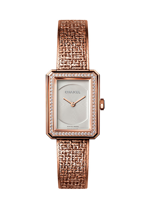 2015년 완전히 새롭게 선보인 ‘보이프렌드(BOY.FRIEND)’ 워치는 중성적인 코드를 더한 여성 시계로서 세계적인 성공을 거두었다. 전 세계적으로 고급 시계업계가 위축되고 있는 시기에 거둔 성공이기에 더욱 뜻깊다. 외관은 남성적이지만 착용했을 때 오직 여성에게 어울리는 이중적 매력을 지닌 샤넬의 아이덴티티를 담은 컬렉션이다. 그 누구도 생각하지 못한 새로운 타깃을 개발해 성공적으로 론칭했다는 것이 의미 있다. 지난해에는 브랜드 고유의 트위드 모티브에서 착안한, 트위드 패턴을 형상화한 메탈 스트랩을 선보이기도 했다. 강철사로 짜고 트위드 패턴을 조각으로 새겨 넣은 스트랩은 완성하는 데 고도의 기술이 필요하다. 소재가 지닌 풍부한 질감을 살리는 것은 패션에서 이어져온 샤넬만의 전매특허이기에 가능한 결과였다. 올해도 보이프렌드 트위드 컬렉션을 만나볼 수 있는데, 블랙과 베이지 골드, 두 가지 컬러가 새롭게 추가되었다.