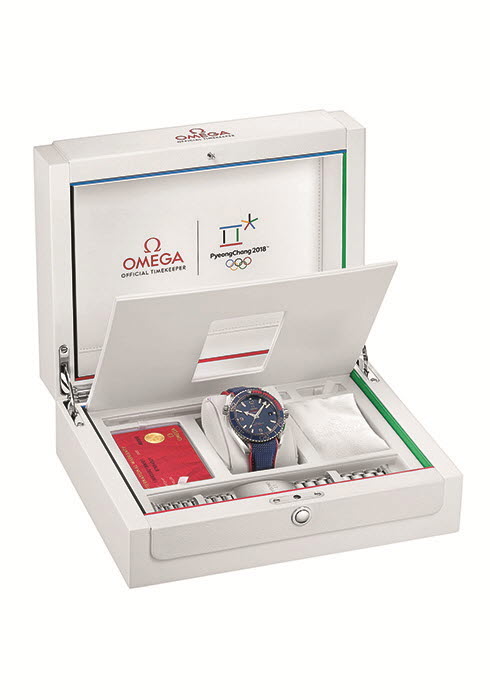 카운트다운 제막 행사를 기념해 오메가는 ‘씨마스터 플래닛 오션 평창 2018’ 리미티드 에디션을 출시했다. 이 특별한 타임피스는 이번 바젤월드 오메가 부스에도 전시되어 눈길을 사로잡았다. 2천18개 한정으로 선보이는 리미티드 에디션으로, 대한민국의 자랑스러운 태극기를 상징하는 선명한 블루와 레드 컬러가 돋보인다. 광택이 나는 블루 세라믹 다이얼과 로듐으로 도금한 인덱스, 가독성을 높인 화이트 슈퍼-루미노바 코팅 디테일, 그리고 세계 최초로 고무를 결합한 블루 세라믹 링을 장착한 단방향 회전 방지 다이빙 베젤이 특징이다. 케이스 백에는 에디션 넘버와 함께 ‘PyeongChang 2018’ 문구와 함께 동계올림픽 로고를 새겨 특별함을 더했다. 오메가 코-액시얼 마스터 크로노미터 칼리버 8900을 탑재했고, 여분의 스테인리스 스틸 브레이슬릿을 포함한 스페셜 박스를 함께 제공해 전 세계 시계 컬렉터들의 마음을 사로잡는다.