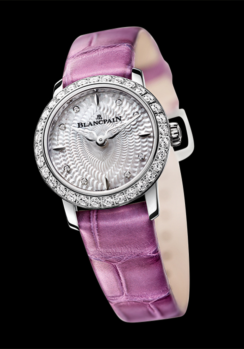 블랑팡의 워치 컬렉션을 이야기할 때 절대 빼놓을 수 없는 시계가 바로 ‘빌레레’다. 더블 스텝 베젤, 로마자 인덱스, 남성적인 러그 등 한눈에도 블랑팡의 시계임을 알아챌 수 있게 하는 클래식한 요소다. 이번 바젤월드에서는 애뉴얼 캘린더에 GMT 기능을 갖춘 제품 중에서는 처음으로 스틸 소재 버전을 공개했다. 스테인리스 스틸 소재의 ‘빌레레 애뉴얼 캘린더 GMT’에 블랙 악어가죽을 매치해 클래식한 매력을 더함으로써, 보다 많은 남성들의 관심을 모을 것으로 예상되는 시계다. 40mm 사이즈로 다이얼 2시 방향에는 요일, 3시 방향에는 날짜, 4시 방향에는 월을 나타내는 인디케이터를 순서대로 배치했고, 8시 방향에는 24시간 단위로 표시하는 GMT(세컨드 타임존) 기능을 담았다. 투명한 사파이어 백 케이스를 통해 기요셰 문양의 옐로 골드 로터가 달린 셀프와인딩 무브먼트 6054F의 섬세한 움직임을 직접 확인할 수 있다. 애뉴얼 캘린더인 만큼 1년에 단 한 번 2월 말(28일이나 29일)에 조정이 필요하다. 그러나 시계 케이스의 러그 아래에 자리한 블랑팡 특허 기술의 언더-러그 코렉터가 장착되어 있어 별도의 도구 없이 손끝으로 각종 기능을 세팅할 수 있어 편리하다는 점 또한 이 시계의 장점이다. 1956년 세계에서 가장 작은 원형 시계, 그것도 쿼츠가 아닌 기계식으로 세상에 공개된 시계가 바로 블랑팡의 여성 컬렉션 ‘레이디버드’였다. 고작 지름 11.85mm 사이즈에 40시간에 이르는 파워 리저브를 자랑했으니, 당시 센세이션을 일으킬 수밖에. 이후 우아한 손목을 위한 필수적인 요소가 된 레이디버드는 해가 갈수록 진화를 거듭하며 까다로운 여성들의 안목을 만족시켜왔다. 올해는 탄생 60주년을 기념해 다양한 변주를 보여주었다. 그중 눈에 띄는 아이템은 단연 60피스 리미티드 에디션의 ‘레이디버드 울트라 슬림’. 지름 15.7mm에 새로운 오토매틱 무브먼트 6150을 심장에 품었고, 자개로 정교한 나뭇잎 패턴의 다이얼을 완성했다. 스트랩은 루이지애나 악어가죽 중에서도 비늘의 무늬가 잔잔한 것만 골라 수작업으로 만들고, 베젤에는 32개의 다이아몬드, 다이얼 표면에는 8개의 다이아몬드를 세팅해 ‘보석’을 향한 여성들의 요구 또한 충촉시켰다. 뿐만 아니라, 백 케이스의 로터에도 다이아몬드를 세팅해 작은 것 하나에도 큰 만족감을 느끼는 여성들의 심리를 그대로 반영한 듯 보였다.