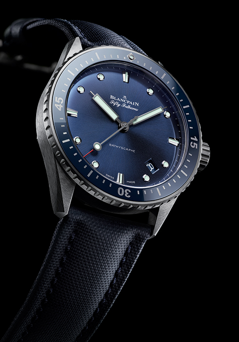 1950년대 후반 남성용과 여성용으로 첫선을 보인 다이버 워치 ‘바티스카프’는 탄생 60주년을 맞은 2013년, 최초의 모델을 복각한 뉴 워치 컬렉션으로 돌아왔다. 이름하여 ‘피프티 패덤즈 바티스카프’. 올해는 깊은 바닷속 푸른빛을 연상시키는 딥 블루 컬러의 ‘피프티 패덤즈 바티스카프’를 내놓아 다시 한 번 눈길을 끌었다. 그레이 플라스마 세라믹 소재의 케이스에 블루 컬러의 세라믹 인덱스를 삽입해 매력을 배가한 것. 다이버 워치인 만큼 시계 반대 방향으로 회전하는 다이빙 베젤과 300m 방수 기능을 갖추었으며, 커다란 초침이 움직이는 것을 통해 잠수 중 시계가 작동하는 것을 인지할 수 있다. 무브먼트 안에 3개의 스프링 배럴을 탑재해 5일간의 파워 리저브를 가능케 했고, 무브먼트의 밸런스 스프링은 실리콘으로 만들어 가볍고 충격에 강한 동시에 자성의 영향을 받지 않는다. 이 시계에 탑재된 칼리버 1315는 합금 소재라 부식에 강하고 온도에 따른 팽창이 적어 시간 오차 감소에 기여한다. 이는 곧 시간의 정확성과 무브먼트의 효율성과 직결되는 부분으로, 완벽한 다이버 워치를 구현하기 위해 골몰한 블랑팡의 노고를 읽을 수 있다.