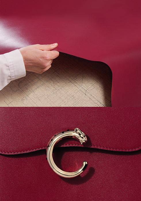 까르띠에 팬더 백은 최상의 송아지가죽으로 제작된다. 이 가죽을 세척해 태닝을 거치고 이후 여러 단계로 이뤄진 기능적 공정이 진행되면서 가죽에 팔멜라토(Palmelatto)라 불리는 물결치는 그레인 효과를 더한다. 이 그레인 텍스처와 은은한 광택은 매우 섬세한 장인 정신이 요구되는 작업이며 팬더 백을 더욱 고귀하게 보이도록 하는 초석이 된다. 여기에 팬더 백에 가장 아이코닉한 포인트를 더할 버클을 장착하면 완벽한 팬더 백이 완성된다. 팬더의 머리를 뱅글 형태의 잠금장치로 재해석한 디자인은 사실적이고 순수한 느낌은 물론 독보적인 입체감을 부여한다. 또 백의 모든 부분에 생기 넘치는 팬더의 생명력을 표현하기 위해 부속품을 모두 핸드 폴리싱해 더욱 세련되고 반짝이는 아트피스로 탈바꿈시켰다. 까르띠에는 이러한 팬더 백 제작에서 역시 지속 가능성 원칙과 관행을 고수한다. 가죽의 원산지와 출처를 투명하게 공개하며 공급망 전반에 걸쳐 존재하는 인적자원을 존중하고 가죽 재료 생산 환경을 보존한다. 그뿐 아니라 가죽 제품 공급 업체가 원칙을 지킬 수 있도록 그들과 긴밀히 협력하며 가능한 한 유럽연합 내에서 제품 대부분을 공수한다. 하이 주얼리 메종의 품격 있는 선한 영향력에 대한 모범을 보이는 것.