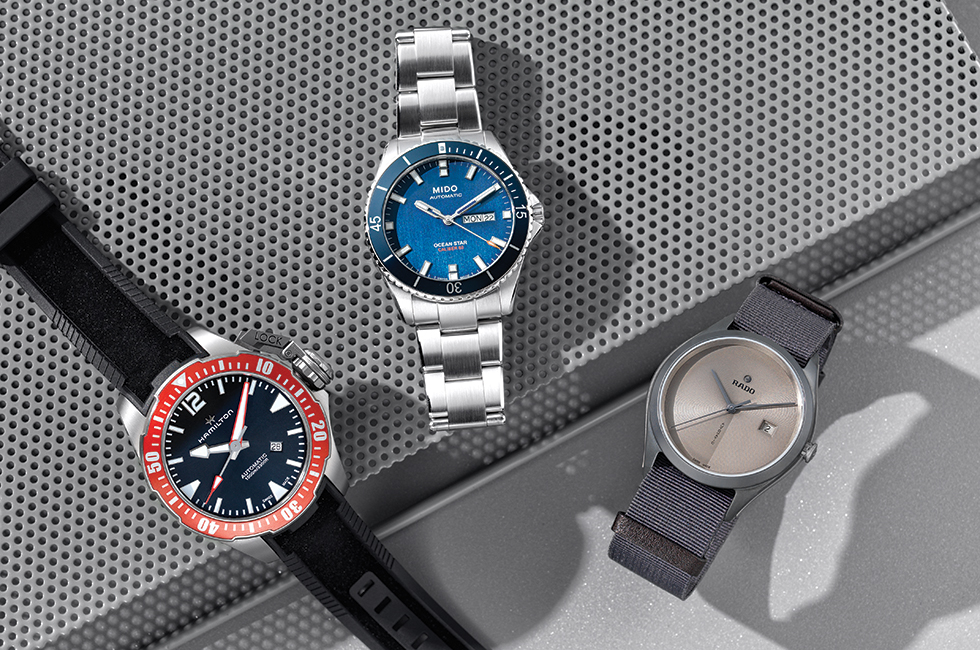 해밀턴 카키 네이비 과거 해밀턴이 미 해군의 잠수 공작병을 위해 만든 다이버 워치에 뿌리를 둔 제품으로, 100m 방수 기능을 갖추었다. 직경 46mm의 커다란 다이얼이 돋보이며, 슈퍼루미노바 코팅 처리한 시곗바늘, 색의 대비를 통해 가독성을 높였다. 문의 02-3149-9593