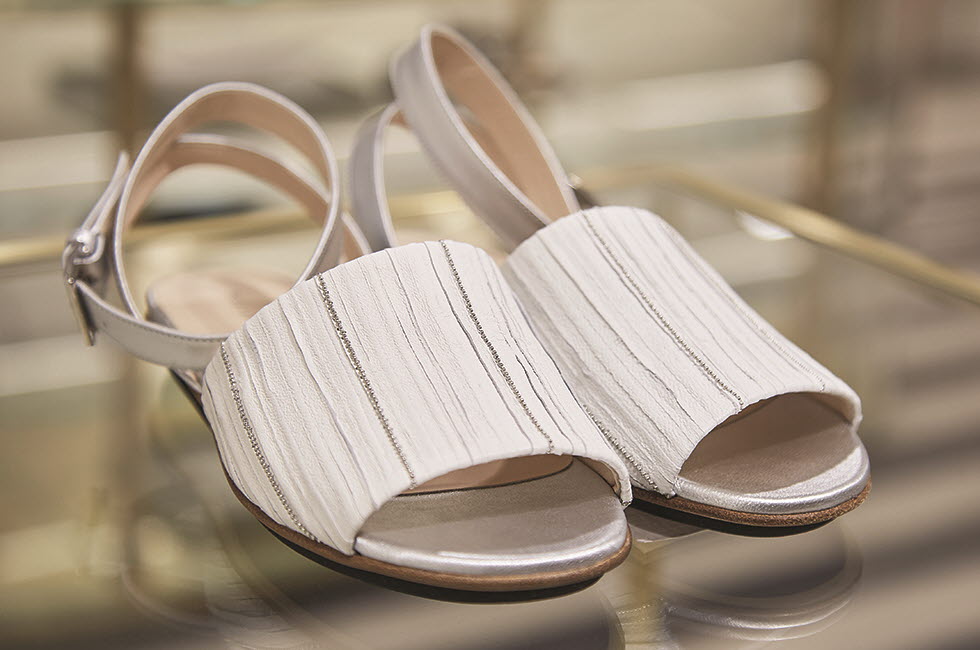 3 파비아나 필리피의 시그너처 디테일인 라인 비딩 장식으로 포인트를 준 화이트 샌들.