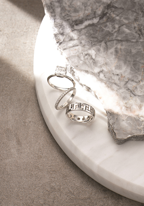 (위부터) 티파니 트루 링 다이아몬드의 영롱한 광채를 돋보이게 하는 동시에 손가락과 가깝도록 정교하게 설계한 플래티넘 링 가격 미정. 티파니 솔리스트 밴드 링 얇은 플래티넘에 다이아몬드를 세팅한 밴드 링 3백40만원. 티파니 T 트루 링 서로 맞물린 알파벳 T가 체인 형태로 교차돼 강인한 균형미를 보여주는 18K 화이트 골드 링 1백86만원. 문의 02-547-9488 |