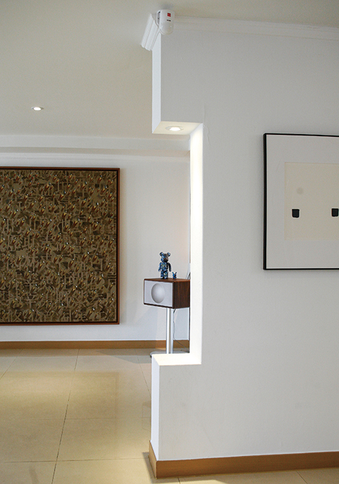 조지 넬슨의 소파, 장 푸르베 조명등, 정원에 놓은 찰스 & 레이 임스 라운지 체어 등 디자이너 가구도 눈에 띄는데, 파리에서 사용하던 해묵은 것들이라고 한다. 크기는 작지만 이 집에서 가장 고가인 앤터니 곰리(Antony Gormley)의 조각도 거실 한 자리를 차지한다. 카툰에서 망가와 팝아트, 조각, 서정적인 한국 현대미술까지, 작품 수가 그리 많지는 않아도 관심 분야가 꽤 다양한 편이다. 아직 자신의 취향을 완전히 믿지 않는다는 그는 갤러리스트 출신인 아내 윤정미 씨의 조언에 귀 기울인다. 하지만 투자가 목적이 아닌지라 결국 자신의 마음이 가는 대로 작품을 택하는 편이다. 자신의 소신을 믿고 스펙트럼을 넓혀갈 에릭 에더의 한국 미술 컬렉션에 더욱 기대를 품게 된다.