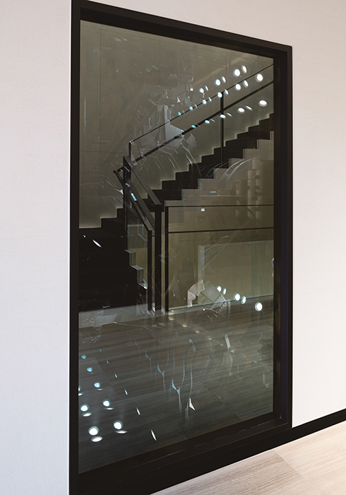 11 이우환의 대표적인 <라인 시리즈>의 선형 목탄 작품을 전시한 계단