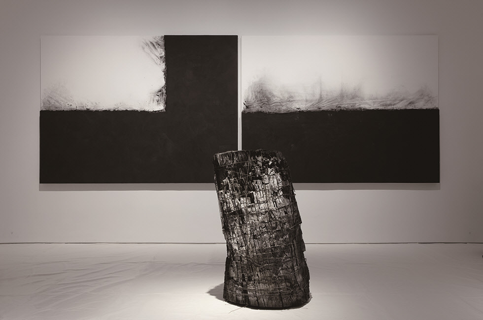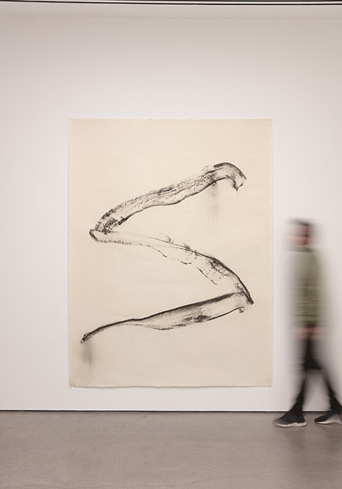 그렇다면 이배가 숯을 매개로 관람객과 함께 만나고 싶은 세계는 어떤 세계일까? 그가 꽤 세심한 설명을 건넨다. “숯 조각은 제가 만든 것이 아닙니다. 나무가 불과 만나, 불에 의해 조형된 그 자체를 보여주는 것이지요. 제가 한 일은 아슬아슬하게 무너지고 부서지려는 것을 끈으로 묶어 불이 만들어낸 최초의 형태를 최대한 유지시키기 위해 조력한 것입니다. 회화보다는 조각에서 좀 더 ‘사건화’가 이뤄지는데, 숯 그 자체는 불의 카오스적인 면을 함유하고 도시에서는 접할 수 없는 자연에서 오는 힘과 그 흔적, 사건을 보여주지요.” 그는 이번 뉴욕 전시를 위해 숯 작업을 하면서 프랑스 브르타뉴 지방의 명물로 5천여 년 전 세워진 카르나크의 거석(Alignements de Carnac)을 떠올렸다고 했다. 육중하고 큰 돌이 4km에 걸쳐 줄지어 뻗어 있는 신비한 열석 덕분에 거석문화의 백미로 꼽히는 마을인 카르나크. 이배 작가는 그 근처에 있는 도멘 드 케르게네크 미술관에서 2016년 전시를 갖기도 했다. “이 거석들은 일반적인 돌돌과 달리 에너지가 있어요. 카르나크 사람들에게 돌들이 왜 그렇게 놓인 것 같으냐고 물으니, ‘에너지가 모이고 기가 모이는 곳이기에, 병자들이 그곳에 가서 누워 있으면 치유가 되는 역할을 거석이 했을 것’이라는 대답이 돌아왔죠. 이 거석들만큼 규모가 크지는 않지만, 옛날 청도에 있는 우리 집 앞에도 이런 돌들이 있었습니다. 숯도 그러한 부분이 많지요.” 당시 수천 개의 카르나크 거석(巨石)들이 늘어서 있는 길 사이를 ‘산책’했다는 그는 이렇게 설명했다. 서양의 자연 4원소와 동양의 오행에서 ‘불’은 원소 중에서도 가장 동적이며 카오스적인 성격을 띤다. 구체적인 형상 때문에 서구의 근본적인 4원소에는 속하지 않는 ‘나무’는 오행에서는 불을 만들어내는 ‘기운’이며, 작가는 이를 돕는 ‘조력자’다. 그리고 불에서 탄생한 숯은 변화를 지니고 있으며 유기적인 부분을 많이 품고 있다. 이배 작가에게 카르나크(아이디어를 얻음)에서 시작해 청도(실제 제작)를 거쳐 뉴욕(작품 설치)까지 이어온 과정 자체가 변화이자 창조적 여정이기도 하다.