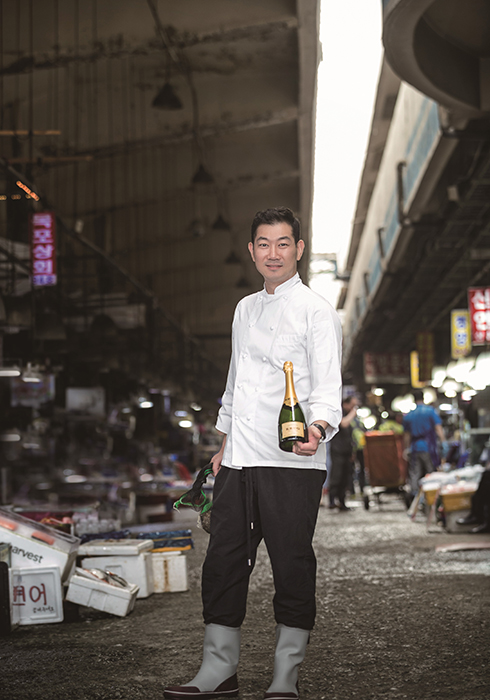 크루그는 3년 전부터 브랜드를 상징하는 프레스티지 샴페인 ‘크루그 그랑 퀴베(Krug Grande Cuve′e)’와 잘 어울리는 식재료를 주제로 전 세계에 걸쳐 셰프들과의 미식 협업을 해마다 펼쳐왔다. 첫해인 2015년에 감자를 시작으로 2016년 달걀, 2017년 버섯, 그리고 올해는 생선이다. 한국에서는 ‘KRUG X FISH’ 프로젝트에 프렌치, 한식, 일식 등을 아우르는 레스토랑이 참여했는데, 라미띠에(장명식 셰프), 정식당(김정호 셰프), 스시조(한석원 셰프), 권숙수(권우중 셰프), 레스쁘아 뒤 이부(임기학 셰프) 등 다섯 곳이다. 저마다 내공과 창의력을 발휘해 크루그와 잘 어우러지는 생선 요리를 선보였다.