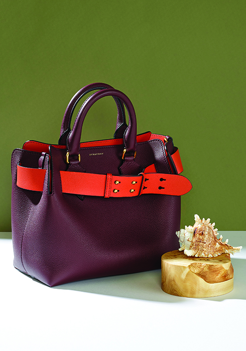 버버리 스몰 벨트 백 버버리 트렌치코트에서 영감을 받은 벨트 장식이 포인트인 토트백. 두 가지 컬러의 부드러운 가죽을 양면에 배치한 감각적인 컬러 플레이가 돋보인다. 23X26cm 2백55만원. 문의 080-700-8800