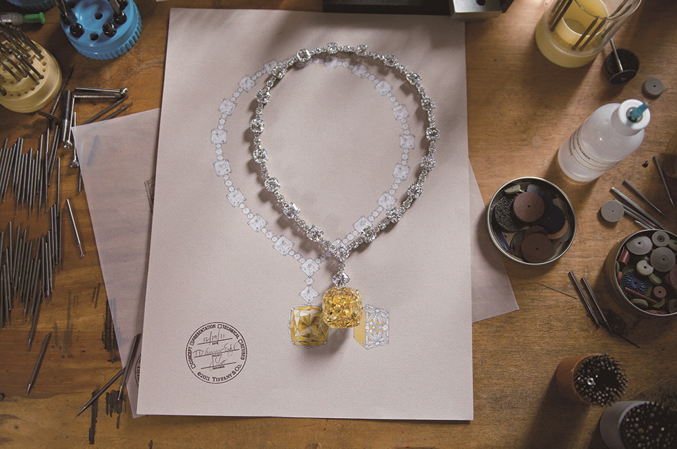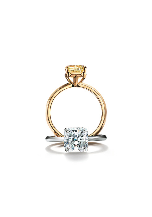 비전이 남다른 티파니의 창립자 찰스 루이스 티파니는 오늘날 우리가 알고 있는 웨딩 링 디자인의 기원이 된 전설적인 티파니 세팅을 탄생시킨 이다. 1800년대 프랑스를 비롯해 유럽의 최상급 보석을 수집하며 ‘다이아몬드의 왕’이라는 호칭을 얻은 그는 주얼리 역사에 중요한 족적을 남긴 ‘티파니 다이아몬드’를 널리 알리며 세계적인 브랜드의 입지를 견고히 다졌다. 특히 티파니를 논할 때 빼놓을 수 없는 사건은 1877년 남아프리카의 킴벌리 광산에서 발견한 2백87.42캐럿의 옐로 다이아몬드를 매입한 일. 티파니의 수석 보석학자인 조지 프레데릭 쿤즈 박사는 원석의 아름다움을 극대화하기 위해 절반 이상의 손실을 감수하며 1백28.54캐럿의 쿠션 브릴리언트 컷 옐로 다이아몬드로 새롭게 탄생시킨다. 세계에서 가장 크고 화려한 옐로 다이아몬드로 기록된 ‘티파니 다이아몬드’는 티파니가 캐럿보다 광채를 중요하게 여기는 특별한 기준을 확립하게 된 계기이자, 세계적인 주얼리 하우스로서 명성을 더욱 높이는 기회가 되었다. 이 다이아몬드는 영화 <티파니에서 아침을>에서 오드리 헵번이 착용한 주얼리로, 시간이 흐름에 따라 보석 세팅을 바꾸어 지난 2012년에는 브랜드 창립 1백75주년을 기념하는 네크리스로 재탄생했다. 현재는 뉴욕 플래그십 스토어에 영구 전시되어 있다. 지난 2월 아카데미 시상식에서는 레이디 가가가 착용하고 레드 카펫을 밟아 다시 한번 세계의 이목을 끌기도 했다.
