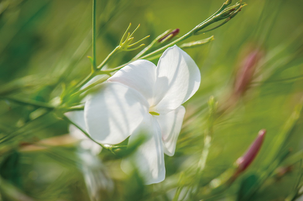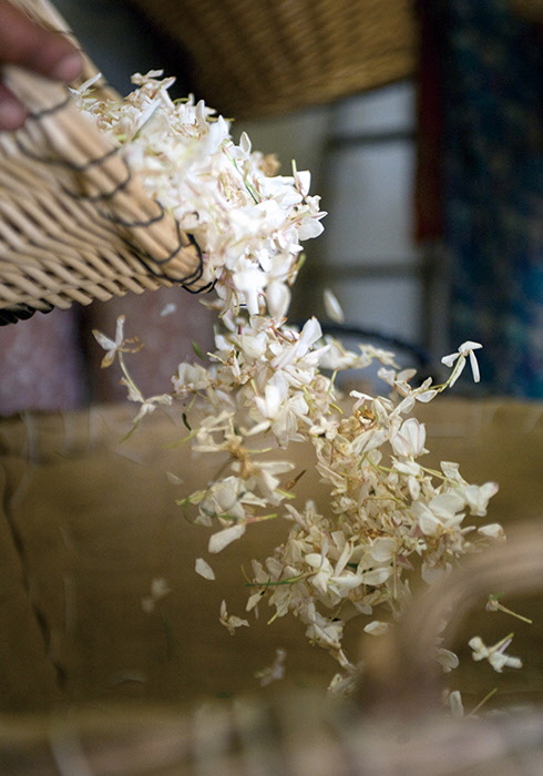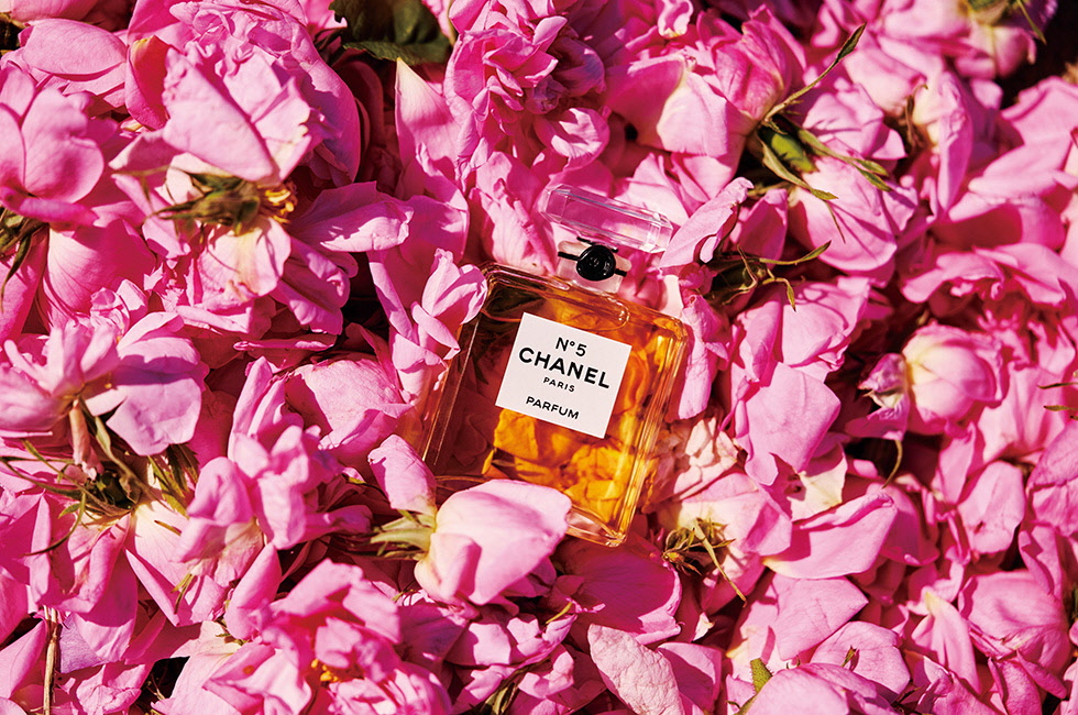 N°5에서 핵심 요소가 되는 것은 꽃이다. 전 세계에는 무수히 많은 귀한 꽃이 있고, 각각 성격이 다른 여성성을 내재하고 있으며 다른 원료와 어우러져 영원불멸의 향기를 만들어낸다. N°5가 지닌 매혹적인 향기는 이러한 고유의 향을 통해 창조된다. 따라서 N°5를 만드는 데 있어 가장 중요한 요소는 품질 좋은 원료를 사용하는 것이며 이 원료들은 다른 것으로 대체할 수 없다는 원칙하에 무엇보다 최고 품질의 원료를 유지하기 위해 노력한다. 매혹적이고 화려한 메이 로즈는 N°5 향조의 핵심 재료다. 20세기에 메이 로즈 또는 로사 센티폴리아로 알려진 이 꽃들이 자라는 유일한 장소는 그라스다. 1백 장의 꽃잎이 달린 작고 둥근 이 꽃은 매우 강한 향기를 지니고 있다. 프랑스 남부 지방의 따뜻한 기후에서 자라는 이 고결한 꽃은 1년에 단 한 번 5월 중에 3주 정도만 꽃을 피운다. 태양 빛으로 손상되기 전인 아침에 꽃잎을 따서 즉시 농축물 형태로 만들고 그 후 앱솔루트를 만든다. 이렇게 하면 꽃향기를 가장 잘 채취할 수 있는데, 샤넬 뷰티는 최상의 재료를 얻기 위해 자체적으로 장미를 키우고 농축액을 제조하는 이 방식을 고수하고 있다. 그 어떤 것과도 유사하지 않은 독특한 메이 로즈 향과 동시에 그라스 지방의 재스민, 그리고 알데하이드가 N°5 조향의 핵심 원료다. 특히 그라스 지방의 재스민 또한 N°5 향수를 위한 추출물 배합에 필수적인 재료다. 따라서 1987년 재스민을 차질 없이 공급받도록 하기 위해 이 지역 생산자들과 파트너십을 맺고 일하고 있으며, 메이 로즈의 독점 생산을 확대해 그라스의 전통과 노하우를 확실히 보존함으로써 이 지역의 대표 꽃들이 미래에도 영구적으로 공급될 수 있도록 노력하고 있다. 그라스 지방의 두 가지 상징적인 꽃인 메이 로즈와 재스민은 이처럼 샤넬에 의해 보호를 받으며 그 영속성을 유지한다. 샤넬 N°5의 럭셔리함과 고유한 향을 지키기 위해서는 엄청난 노력과 대가가 요구되지만 그것이 바로 샤넬 N°5를 상징하는 탁월한 향기를 영구적으로 만들어낼 수 있는 유일한 길이다.