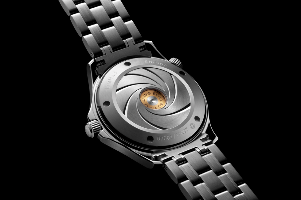 4,5 제임스 본드 탄생 50주년을 기념하는 워치. 백 케이스에는 007 시리즈를 상징하는 건 배럴 모티브를 활용했다.