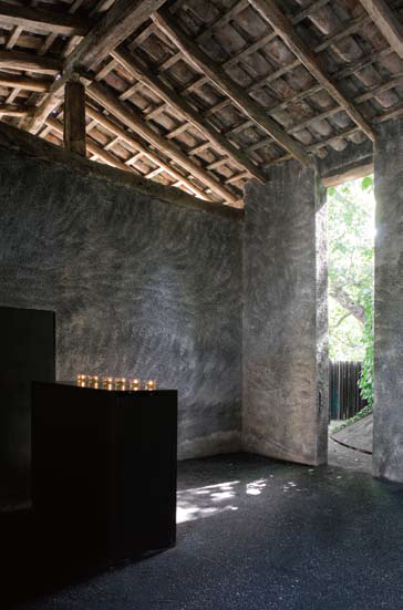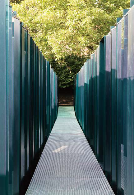 엄밀히 말해 이곳은 스페인이 아니다. 프랑스와 스페인의 국경에 걸쳐 위치한 카탈로니아 지방은 독립적인 커뮤니티이다. 프랑스의 한 지방처럼 불리는 프랑스 카탈로니아와는 달리 스페인 카탈로니아 지방은 자발 적인 국민투표에 의해 독립했다. 프랑스 국경에서 차로 1시간, 딱 코스타 브라바 해변까지의 거리만큼 걸 리는데 단조로운 지형을 단조로운 시선으로 좇다 보면 올롯(Olot)이라는 지방에 도착한다. 그리고 전원풍 경에 둘러싸인 가로사(Garrotxa) 공원 근처에 위치한 레 콜(Les Cols)이 나온다. 이곳의 분위기는 어쩐 지 전혀 다른 차원으로 인도할 것만 같은, 마치 나침반 없이 여행하는 기분을 느끼게 한다. 그리고 이곳의 홀에 발을 내딛는 순간 커다란 감동에 할 말을 잃게 될 것이다. 칠흑같이 어두운 검은색 페인트를 칠한 옛 농가 건물의 벽을 지나 개천을 건너면 용암의 굴곡이 카펫처럼 드리운 땅에 도착한다. 이곳이 화산 지대임 을 깨닫는 순간, 당신은 감탄사를 내뱉을 것이다. 광선이 스며드는 듯한 느낌을 주는 단 하나의 열린 문은 마치 파빌리온의 방문객들을 기다리고 있는 식물 박스 같은 느낌을 전해준다. 5개의 큐브는 어항만큼이 나 투명하고 초록색으로 채색된 메탈 소재 혹은 반투명의 휜 대나무 스크린으로 견고하게 나뉘어 있어 마 법에 빠진 듯한 느낌을 선사한다.