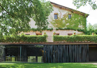 공간과 새로운 관계를 맺게 해주는 이 느낌은 처음에는 방해적인 요소로 작용할지도 모른다. 하지만 시 간이 지나면서 당신을 바라보는 것은 온통 ‘자연과 하늘뿐’이라는 사실을 깨닫게 될 것이다. 그리고 모든 선입견과 관습들로부터 자유로워짐을 느낄 수 있을 것이다. 돌멩이로 이루어진 풀장의 끝은 침대와 도 닿아 있는데, 아무것도 걸치지 않은 채 다이빙할 수도 있다. 또 이곳에 머무는 방문객들은 랜드 아트 처럼 꾸민 아름다운 정원을 각자 소유할 수 있다. 어디에서도 경험한 적이 없는 이 특별한 독창성은 최대 한 눈에 띄지 않으면서도 시대를 초월하는 사치의 진수를 보여주기도 한다. 셰프 피나 푸이그데발(Pina Puigdevall)은 1990년 초에 레 콜 1층에 가족 농장 레스토랑을 열었다. 그녀가 태어나고 삶을 뿌리내린 곳이기 때문이다. 로컬 푸드만 사용하는 그녀의 요리는 깐깐한 미식가들의 입맛을 유혹했다. 2002년 그 녀는 건축사무소 RCR의 트리오인 라몽 빌랄타(Ramon Vilalta), 카르메 피겜(Carme Pigem), 라파엘 아란다(Rafael Aranda)를 불러들였다. 그녀는 건축가들에게 이렇게 요구했다. “나는 가장 친밀하면서 도 기쁨의 언어로 넘쳐나는 가족적인 분위기를 원해요.” 그에 따라 건축가들은 메탈 소재의 모던한 박스 를 디자인했다. 이 박스는 거칠지만 귀하고, 그녀의 요리를 연상케 하며, 불규칙적이지만 관대함과 부드러 움이 묻어나며, 현대적인 것이 곧 전통이 될 수 있음을 표현한다. 고객들은 호텔에서 느끼는 순간의 평온 함을 다음 날도 어김없이 느끼고 싶어 한다. 그것을 잘 아는 피나의 형제 호아킴과 그의 아내 주디트는 그 들의 땅을 내주어 만족스러운 시간을 연장시켰다. 호텔에 묵은 고객들은 다음 날 피크닉 바구니를 하나씩 건네받는다. 호텔을 떠나며 그 옆에 펼쳐진 숲에서 피크닉을 즐길 수 있도록 말이다.