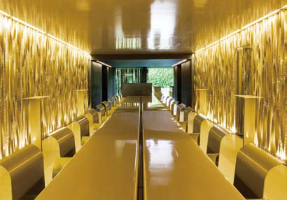 1, 3, 4, 10 유리와 메탈로만 이루어진 파빌리온의 골목길과 가족의 낡은 농가를 개조해 만든 현대적인 레스토랑. 2 침대는 침실에 허용된 단 하나의 가구이다. 유리 재질의 벽은 모든 움직임을 비추는 거울과 같은 역할을 한다. 5, 6 거친 메탈, 아름다운 금이 대비되어 전통적인 조화를 이끌어내는 레스토랑의 인테리어.7, 8, 9 로컬 푸드만 사용하는 1층 레스토랑의 다양한 음식과 직접 키우는 농작물. 11 미니멀리스트 콘셉트에 따라 세면대의 수도꼭지를 모두 없앴다.
