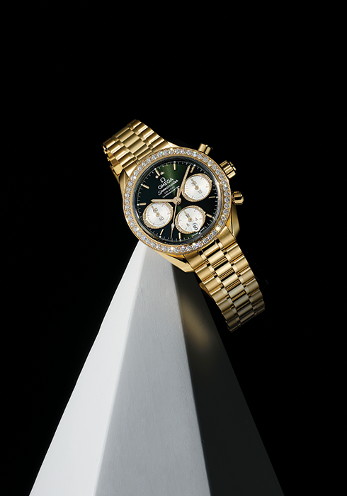 전체 폴리싱 처리한 18K 문샤인™ 골드 케이스에 베젤에는 52개의 다이아몬드를 세팅했으며, 크라운에는 싱글 다이아몬드를 세팅해 우아함을 더한 스피드마스터 38. 그린 PVD 다이얼로 남다른 개성을 자랑하며 오메가 코-액시얼 칼리버 3330으로 구동한다. 6천6백만원대 오메가. 문의 02-6905-3301 |