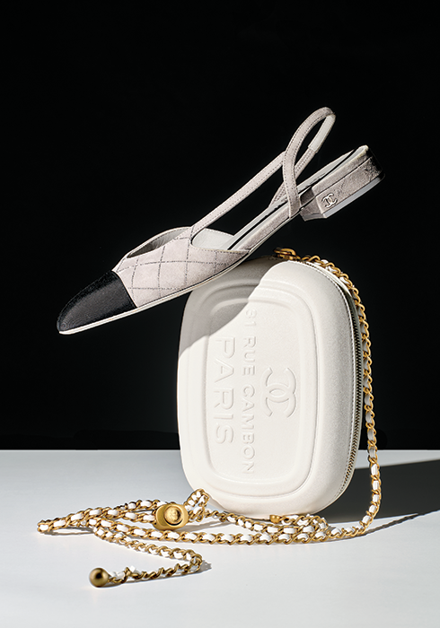 (위부터) 2024~25 크루즈 컬렉션 모델로 퀼팅 모티브를 더한 그레이 컬러 스웨이드 고트 스킨과 그로그랭 소재의 블랙 토로 완성한 슬링백, 카메라 케이스를 닮은 위트 넘치는 디자인으로 샤이니 램 스킨과 골드 톤 메탈로 완성한 백 모두 가격 미정 샤넬. 문의 080-805-9628 |